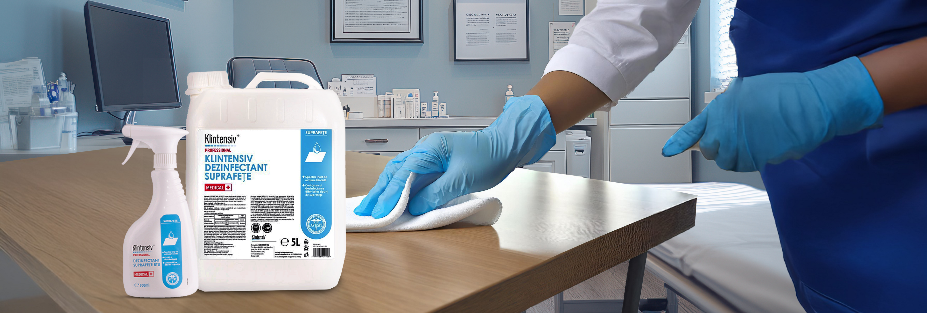 Produsele dezinfectante Klintensiv sunt create pentru performanță maximă. Nu facem compromisuri între puterea dezinfectantă, siguranță și ușurința în utilizare. De la suprafețe dure și inox, până la textile și spații sensibile, gama noastră completă acoperă orice nevoie. Formulate profesional, dar potrivite și pentru uz casnic.